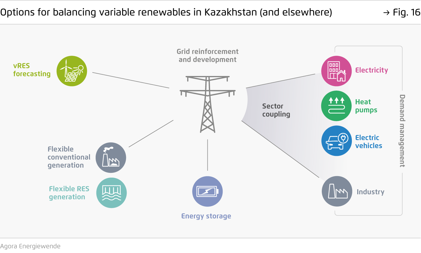 The aim of this study is to present pathways for achieving this share of 15% as well as even higher shares of vRES. Critically, the pathways presented in this paper minimize power system costs and ensure security of supply while phasing down carbon intensive coal-fired power generation. Transitioning away from coal is a particularly important contribution towards reaching Kazakhstan’s climate targets.