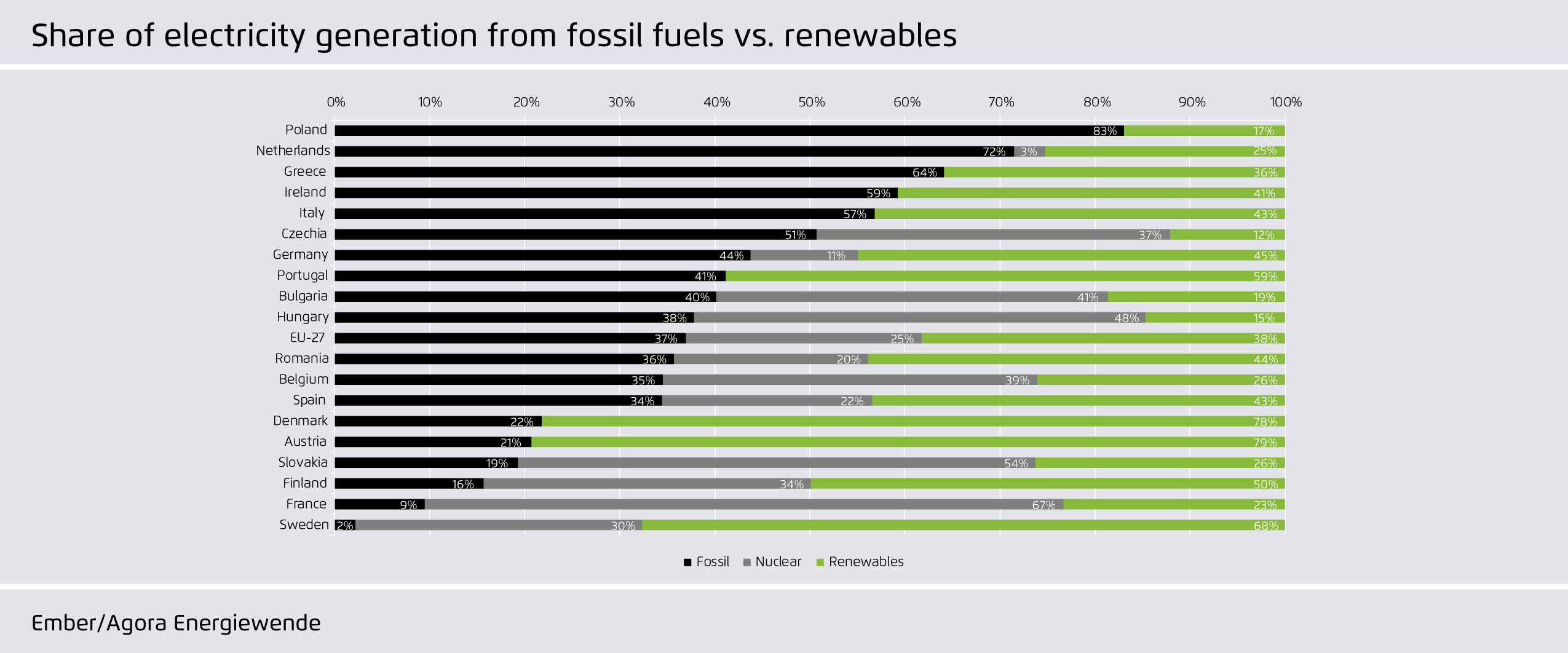 For the fifth year in a row, Ember and Agora Energiewende have joined forces to provide a current snapshot of the European electricity sector transition. Key topics addressed in this report include renewables growth, conventional power generation, electricity consumption and CO₂ emissions.